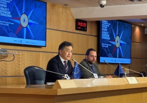 El 5 de febrero, el Ministro Sato participó en un Ciclo de Relaciones Transatlánticas organizado por el Instituto Franklin-UAH, en colaboración con la Fundación Consejo España EE. UU., e impartió una conferencia sobre la situación de seguridad que rodea a Japón y sus relaciones con la OTAN, entre otros asuntos, y subrayó que la seguridad de la región Euroatlántica y del Indo-Pacífico son indivisibles.