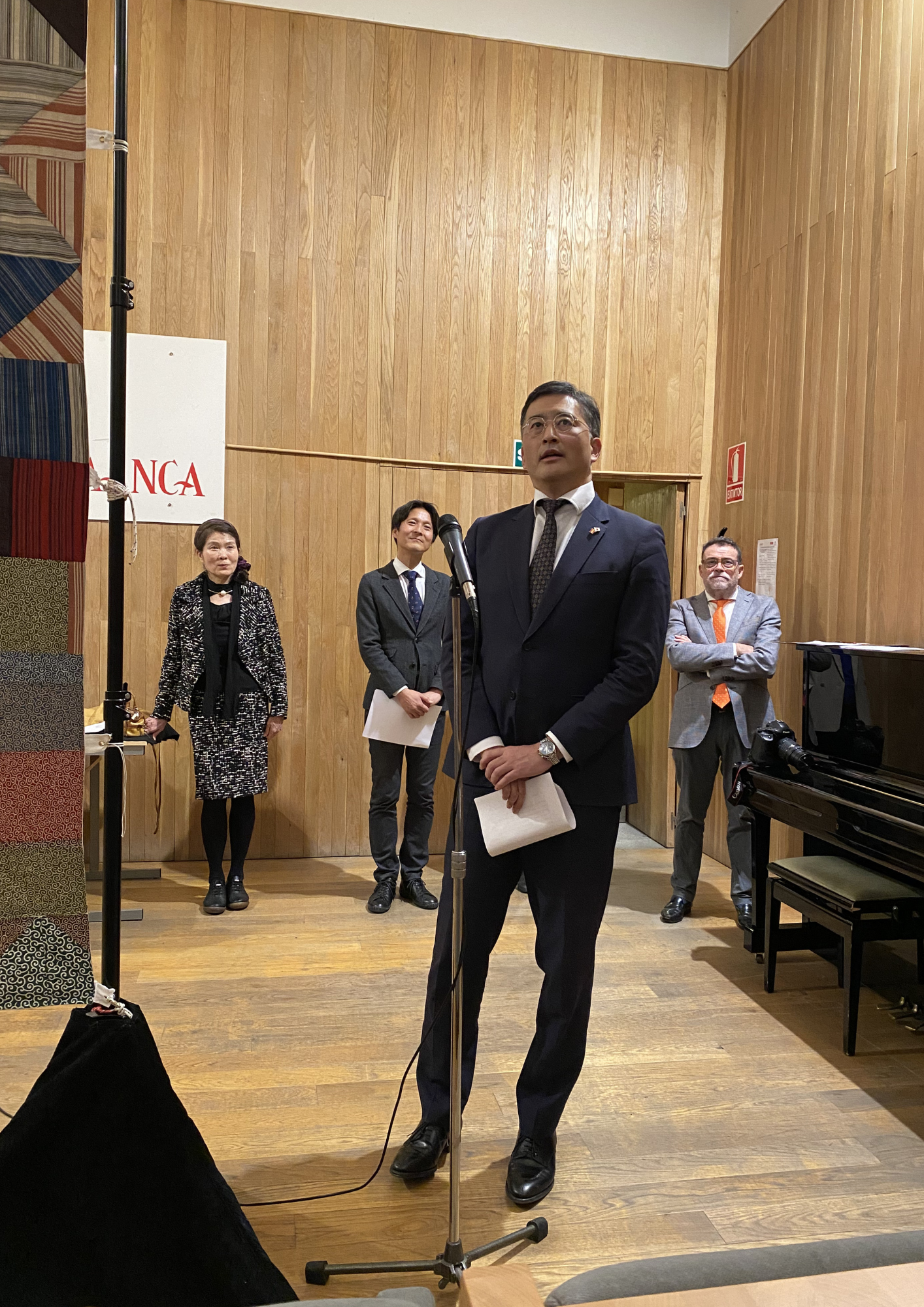 3月16日、佐藤臨時代理大使は、サラマンカ日西文化センターで行われた第25回日本文化週間開会式に出席しました。式典には、オラルテ・サラマンカ大学副学長、武田国際交流基金マドリード日本文化センター所長、フローレス・サラマンカ日西文化センター所長が出席し、オープニングイベントとして、田中紅子氏の影絵人形劇が上演されました。また、併せて、伊藤みろ氏の写真展「La importancia histórica del templo Hōryū-ji y el príncipe Shōtoku」も開幕されました。